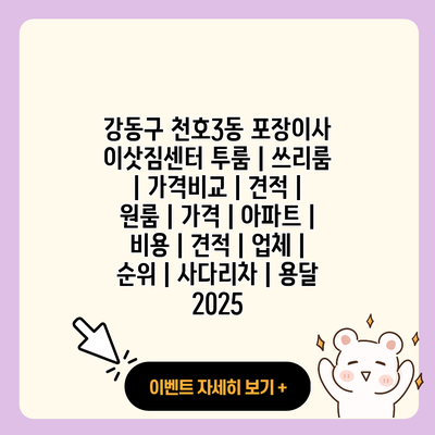 이사를 준비하는 과정은 언제나 신나고 설레는 일입니다. 하지만 그만큼 스트레스와 부담도 큰 일이죠. 그래서 오늘은 강동구 천호3동에서의 포장이사에 대한 모든 것을 알아보려고 해요. 포장이사와 관련된 정보, 업체의 순위, 비용, 그리고 직접 비교할 수 있는 방법에 대해 자세히 설명해드릴게요.