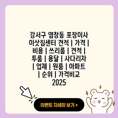 강서구 염창동에서 이사할 계획이 있으신가요? 이사라는 큰 작업 앞에 서서 막막해하시는 분들이 많으실 것 같아요. 하지만 걱정하지 마세요! 포장이사에 대한 모든 정보를 제공해 드릴게요. 이 포스팅을 통해 이사 비용, 업체 추천, 견적 비교 방법 등을 자세히 안내해 드리겠습니다.