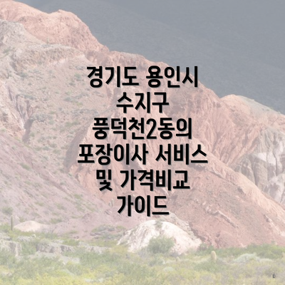 경기도 용인시 수지구 풍덕천2동은 최근 이사 수요가 급증하고 있는 지역입니다. 이사는 스트레스가 많은 경험이기도 하고, 또한 비용이 커질 수 있습니다. 그러므로 이사 시 가격비교가 중요합니다. 이 포스팅에서는 포장이사 업체의 가격, 견적, 그리고 각종 필요한 정보들을 자세히 살펴보겠습니다.