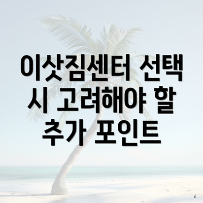 이삿짐센터 선택 시 고려해야 할 추가 포인트
