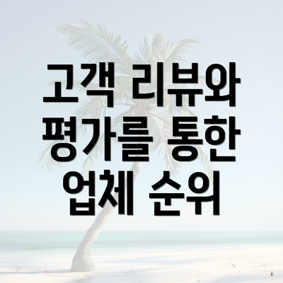 - 정리된 리뷰와 평가를 바탕으로 업체 순위를 매겨요. 상위 업체일수록 높은 신뢰성과 만족도를 보여줄 거예요.