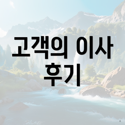 고객의 후기는 업체 선택 시 큰 도움이 됩니다. 예를 들어, A 이사센터에 대한 후기에서는 “빠르고 안전하게 이사해주셨고 서비스에 만족했다”는 평이 많습니다. 반면에 C 이사센터는 “비용이 비쌌지만 서비스 품질이 뛰어났다”는 평가를 받고 있습니다.