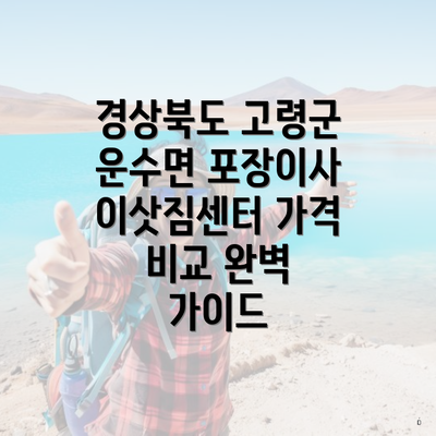 이사를 계획할 때는 많은 요소를 고려해야 해요. 특히 경상북도 고령군 운수면에서의 포장이사 비용은 업체에 따라 상이하므로, 정보를 잘 분석하는 것이 중요해요.