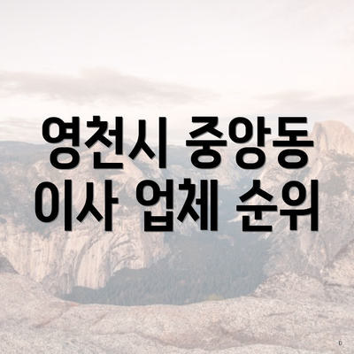 영천시 중앙동에서 이사를 계획하고 계신가요? 그러면 적합한 이사 업체를 선택하는 것이 아주 중요해요. 많은 업체들이 있기 때문에 어떤 업체를 선택해야 할지 고민될 수 있어요. 아래에서는 영천시 중앙동에서 추천할 만한 이사 업체를 순위별로 정리해볼게요.