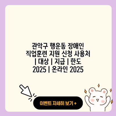 관악구 행운동의 장애인 직업훈련 지원은 장애인 분들이 사회에 통합되고, 자립적인 삶을 영위할 수 있도록 돕는 중요한 프로그램입니다. 지원 대상, 금액, 신청 방법, 사용처를 잘 이해하고 활용하면 많은 혜택을 누릴 수 있습니다.