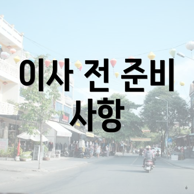 - 이사 전에 어떤 물품을 가져갈지 정리하는 것이 중요해요. 불필요한 물건은 미리 처분하시는 것이 좋아요.
