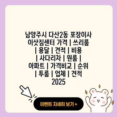 ✅ 남양주시의 포장이사 비용을 알아보세요. 실속 있는 정보가 가득합니다!