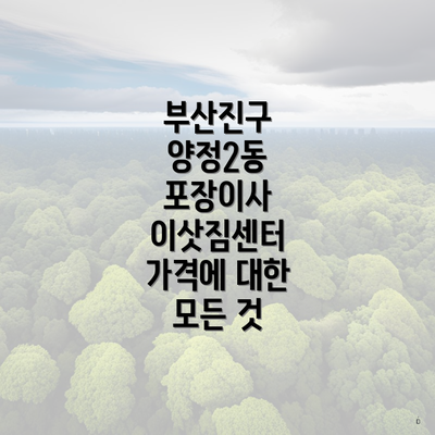 부산진구 양정2동 포장이사 이삿짐센터 가격에 대한 모든 것