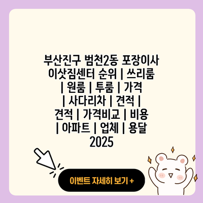 포장이사를 선택하는 것은 인생에서 가장 스트레스가 많은 일 중 하나입니다. 특히 부산진구 범천2동과 같은 바쁜 지역에서는 더욱 그렇습니다. 이삿짐센터를 잘 선택하는 것이 원활한 이사의 첫걸음이 될 수 있습니다. 이번 포스트에서는 범천2동의 포장이사 업체 선정 방법, 이사 종류, 가격, 견적 비교 등을 심도 있게 다뤄보겠습니다.