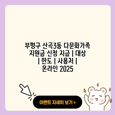 Q1: 부평구 산곡3동의 다문화가족 지원금 신청 방법은 무엇인가요?