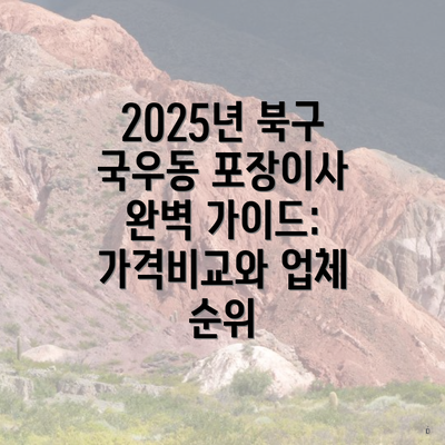 2025년 북구 국우동 포장이사 완벽 가이드: 가격비교와 업체 순위