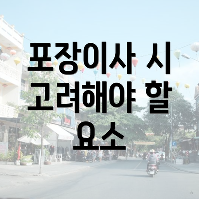 포장이사를 계획할 때는 여러 가지 요소를 신중히 고려해야 해요. 이 요소들은 이사 과정의 원활함과 최종 비용에 큰 영향을 미치기 때문에 매우 중요해요. 다음은 포장이사 시 반드시 고려해야 할 핵심 요소들을 정리한 표입니다.