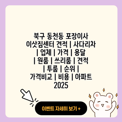 Q1: 북구 동천동에서 포장이사나 이삿짐센터를 이용할 때 견적이 중요한 이유는 무엇인가요?