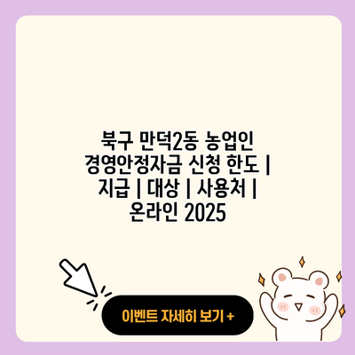 농업은 우리의 생활에 매우 중요한 분야로, 특히 변동성이 큰 농업 시장에서 안정적인 경영을 위해서는 정부의 지원이 필수적이에요. 이에 따라 많은 농업인들이 ‘농업인 경영안정자금’을 신청하여 그 혜택을 받고 있답니다. 이번 포스팅에서는 북구 만덕2동의 농업인 경영안정자금 신청 한도, 지급 대상, 사용처 등을 상세히 알아보도록 할게요.