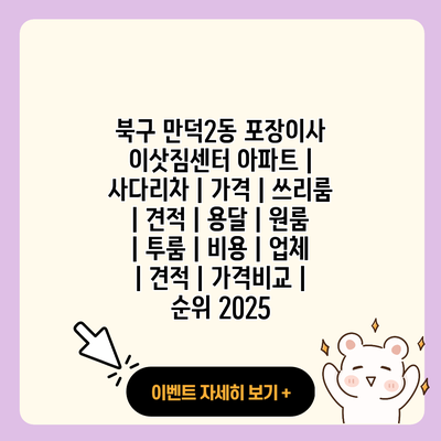 여기 북구 만덕2동에서 추천할 만한 포장이사 업체 리스트를 소개할게요. 각 업체의 특성과 특징을 참고해보세요.
