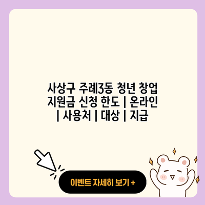 사상구 주례3동 청년 창업 지원금 신청 한도 | 온라인 | 사용처 | 대상 | 지급