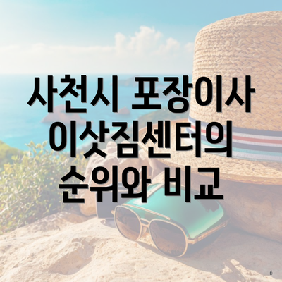 이와 같이 사천시에서 제공하는 포장이사 이삿짐 센터의 순위를 비교해보면, 고객 리뷰부터 시작하여 가격, 서비스 범위, 전문성, 보험 가입 여부까지 다양한 요소들을 종합적으로 고려해야 해요. 이러한 정보들은 여러분이 믿을 수 있는 이삿짐 센터를 선택하는 데 큰 도움이 될 거예요. ✨