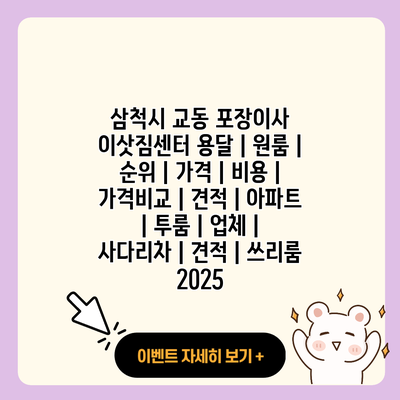 이사라는 중대한 결정은 언제나 신중히 다뤄져야 하며, 특히 삼척시 교동과 같은 지역에서의 이사는 그 특수성과 중요성으로 인해 더욱 그러하다. 이번 포스팅에서는 다양한 이사 서비스에 대한 가격 비교와 업체 선정에 대한 팁을 소개하고, 여러분이 필요로 하는 정보와 인사이트를 제공하겠다.