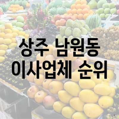 아래의 표는 상주 남원동에서 인기 있는 이사 업체들의 간단한 요약입니다.