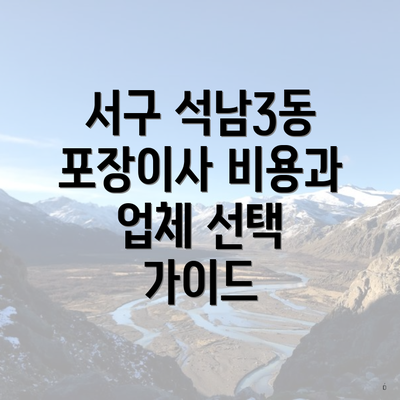 서구 석남3동 포장이사 비용과 업체 선택 가이드