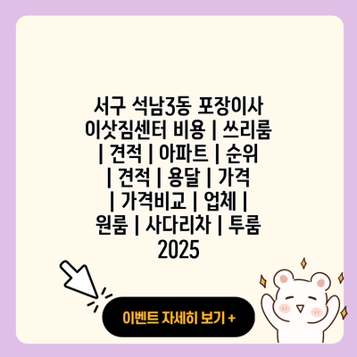 이사를 준비하는 것은 언제나 큰 일입니다. 특히 서구 석남3동에서의 포장이사라면 더욱 많은 고려 사항과 선택이 필요합니다. 이 게시글에서는 이삿짐센터의 비용과 선택 방법에 대해 심층적으로 알아보겠습니다.