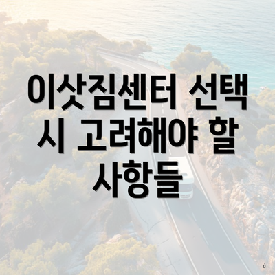 이삿짐센터를 선택할 때는 다음과 같은 사항들을 고려해야 해요:
