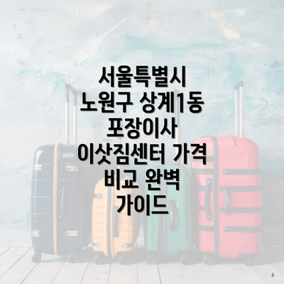 서울특별시 노원구 상계1동 포장이사 이삿짐센터 가격 비교 완벽 가이드