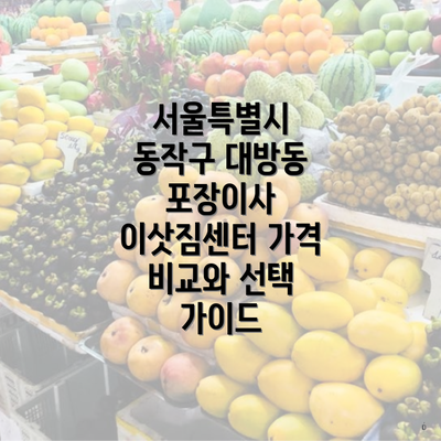 서울특별시 동작구 대방동 포장이사 이삿짐센터 가격 비교와 선택 가이드