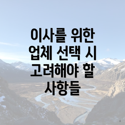 이사를 위한 업체 선택 시 고려해야 할 사항들
