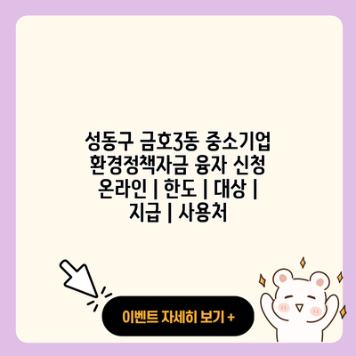 ✅ 성동구 금호3동에서 지원하는 환경정책자금의 세부 정보를 알아보세요.