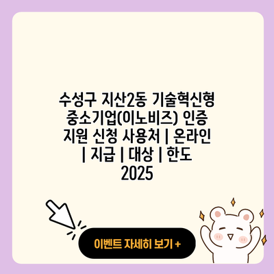 수성구 지산2동 기술혁신형 중소기업(이노비즈) 인증 지원 신청 사용처 | 온라인 | 지급 | 대상 | 한도 2025 2025-03-26 작성자: 네이버펀 ⚠️ 이 글을 끝까지 읽어보시면 상품이있습니다. ⚠️ Error processing content. 감사합니다. 다른글도 참고해주세요