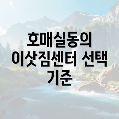 이제 다음 섹션에서는 호매실동의 이삿짐센터 선택 기준에 대해 더 깊이 알아보겠습니다.