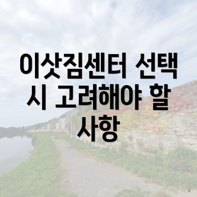 이삿짐센터를 선택할 때는 몇 가지 사항을 고려해야 해요.