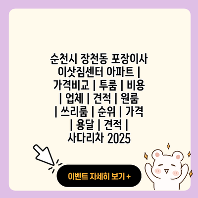 이 정보들이 여러분이 순천시 장천동에서 최적의 이삿짐센터를 선택하는 데 도움이 되었으면 좋겠어요. 이사를 위해 미리 꼼꼼히 준비해두세요!