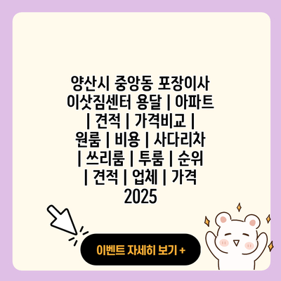 양산시 중앙동 포장이사와 이삿짐센터의 다양한 선택과 가격비교 가이드