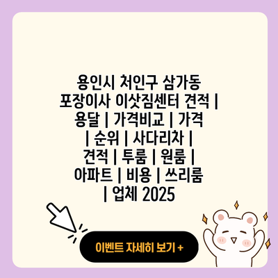 용인시 처인구 삼가동에서 이사를 계획하고 계신가요? 이사 준비는 항상 복잡하고 스트레스를 유발하는 과정이죠. 특히 포장이사와 이삿짐센터를 선택하는 일은 더욱 신중해야 해요. 이 글에서는 이사 견적, 가격 비교, 업체 선택 시 유용한 정보들을 드릴게요.