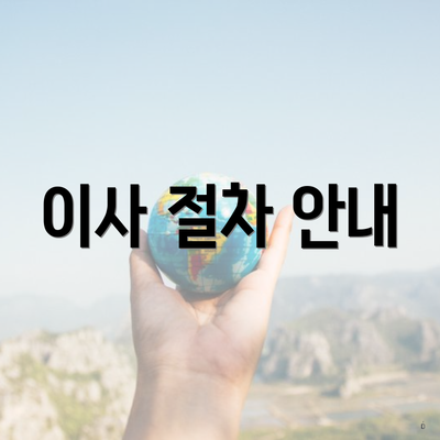 A3: 이사 절차는 짐 정리, 견적 요청, 이사 날짜 확정, 이사 당일 짐 포장 및 운반, 이사 후 물품 점검으로 이루어집니다.