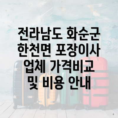 포장이사를 계획 중이신가요? 특히 전라남도 화순군 한천면에 이사할 때, 이삿짐센터를 선택하는 것은 쉽지 않은 결정입니다. 전문가와의 상담도 필요하지만, 가격비교를 통해 합리적인 선택을 할 수 있다는 점을 강조하고 싶습니다. 이 글에서는 포장이사에 대한 모든 정보를 자세히 살펴보겠습니다.