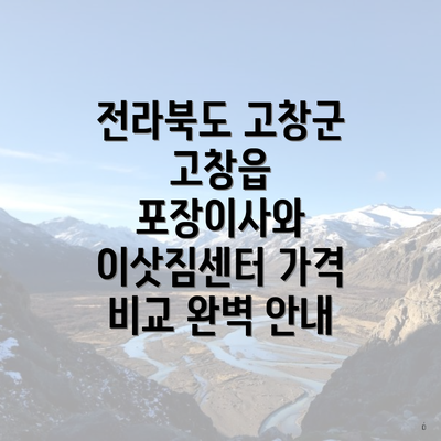 전라북도 고창군 고창읍 포장이사와 이삿짐센터 가격 비교 완벽 안내