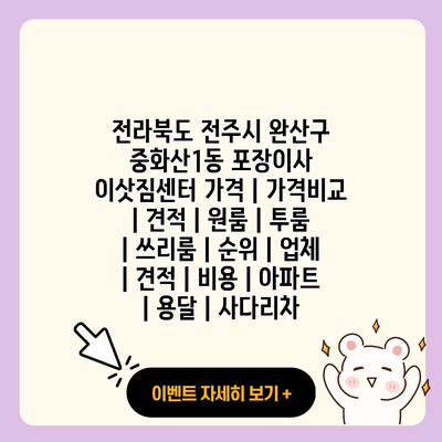전라북도 전주시 완산구 중화산1동에서 이사를 계획하고 있다면, 비용과 서비스 선택이 매우 중요합니다. 이 글에서는 포장이사와 이삿짐센터의 가격, 다양한 견적 방식, 서비스 비교 방법을 자세히 설명하겠습니다.