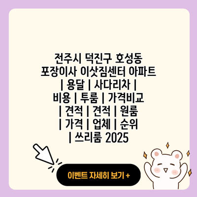 ✅ 덕진구 호성동 이사 비용을 확실히 비교해보세요!