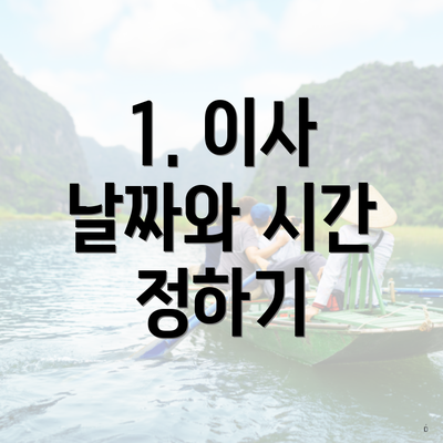 이사 날짜는 이사 준비의 첫걸음이에요. 대개 주말이나 공휴일에 이사를 많이 진행하지만, 이럴 경우 이삿짐 센터의 비용이 더 비쌀 수 있어요. 따라서 평일에 이사하는 것도 좋은 방법이에요. 예를 들어, 특정 월요일에 이사를 하면 주말보다 비용이 저렴할 확률이 높답니다.