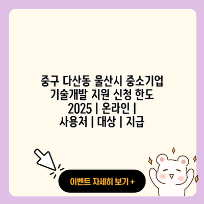 중구 다산동 울산시 중소기업 기술개발 지원 신청 한도 2025 | 온라인 | 사용처 | 대상 | 지급