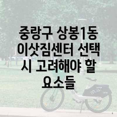 이사를 계획하고 있다면 어떤 이삿짐센터를 선택할지가 매우 중요해요. 특히 중랑구 상봉1동처럼 많은 선택지가 있는 곳에서는 더욱 신중해야 해요. 여기에서 이삿짐센터를 선택할 때 고려해야 할 몇 가지 중요한 요소들을 정리해보았어요: