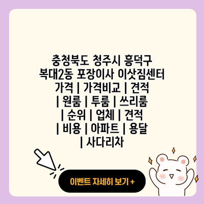 충청북도 청주시 흥덕구 복대2동에서 포장이사를 진행할 때, 어떤 업체를 선택해야 할지 고민하시는 분들이 많을 거예요. 그럼, 신뢰할 수 있는 포장이사 업체를 순위를 정리하여 추천해 드릴게요. 아래의 표를 통해 각 업체의 특징과 비용, 서비스 만족도 등을 비교해 보세요.