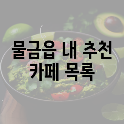 A1: 양산시 물금읍에는 ‘카페 아모르’, ‘드립 커피 하우스’, ‘카페 무드’, ‘커피빌’, ‘카페 호크’ 등 다양한 추천 카페가 있습니다.