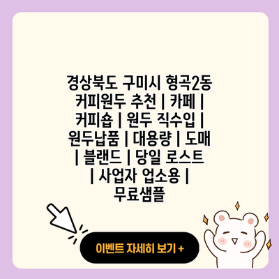 경상북도 구미시에 위치한 형곡2동은 커피 애호가들에게 특별한 장소입니다. 이곳에는 다양한 커피숍과 카페들이 모여 있으며, 그중에서도 원두 직수입을 통해 차별화된 커피를 제공하는 매장들이 증가하고 있습니다. 여기서 주목해야 할 점은 당일 로스트와 대량납품 서비스를 제공하는 곳들이 있다는 점입니다. 이 글에서는 형곡2동의 커피 원두 추천과 함께 카페 정보를 상세히 알아보겠습니다.